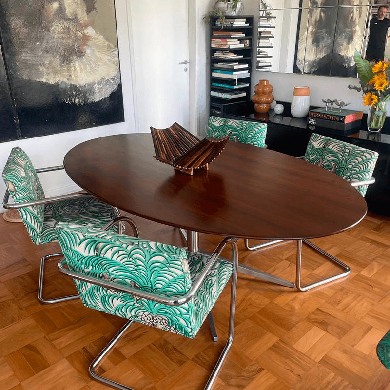 Sou Bruna Faria, trabalho com curadoria de móveis de segunda mão, guiada por critério técnico, sensibilidade estética e respeito ao design.